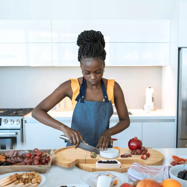 Ta deska ne le elegantno prikaže vaše prigrizke, ampak služi tudi kot rezalna deska. Njena gladka lesena površina omogoča enostavno rezanje in serviranje vseh vaših najljubših prigrizkov na enem mestu.