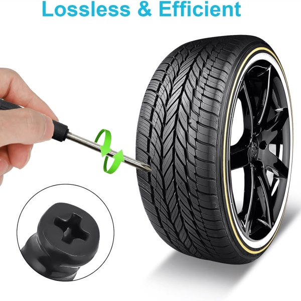 Preprosto privijte gumijasti žebelj, da začasno zmanjšate uhajanje zraka pri manjših predrtinah tekalne površine pnevmatike ter varno nadaljujete vožnjo do najbližjega servisa.