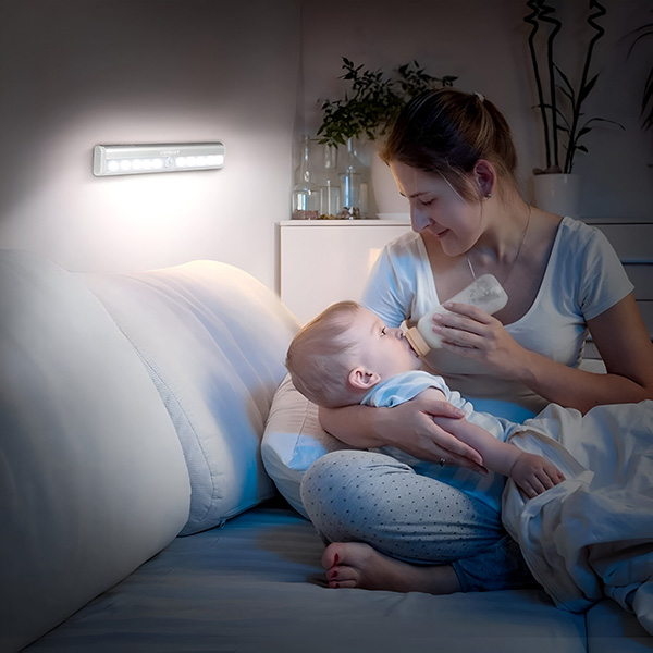 Nikoli več se ne spotaknite v temi! Namestite to lučko blizu vznožja postelje, da se bo, ko se ponoči zbudite, samodejno prižgala in vas varno vodila do umivalnice ali vrat.