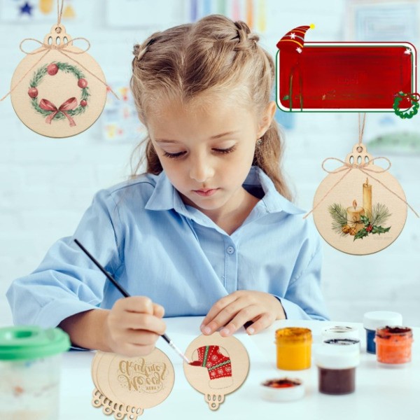 Preoblikujte svoj božični dekor s 30 visokokakovostnimi, vnaprej izvrtanimi lesenimi ploščami, idealnimi za ustvarjanje personaliziranih okraskov, ki bodo vašemu božičnemu drevesu dodali rustikalni čar.